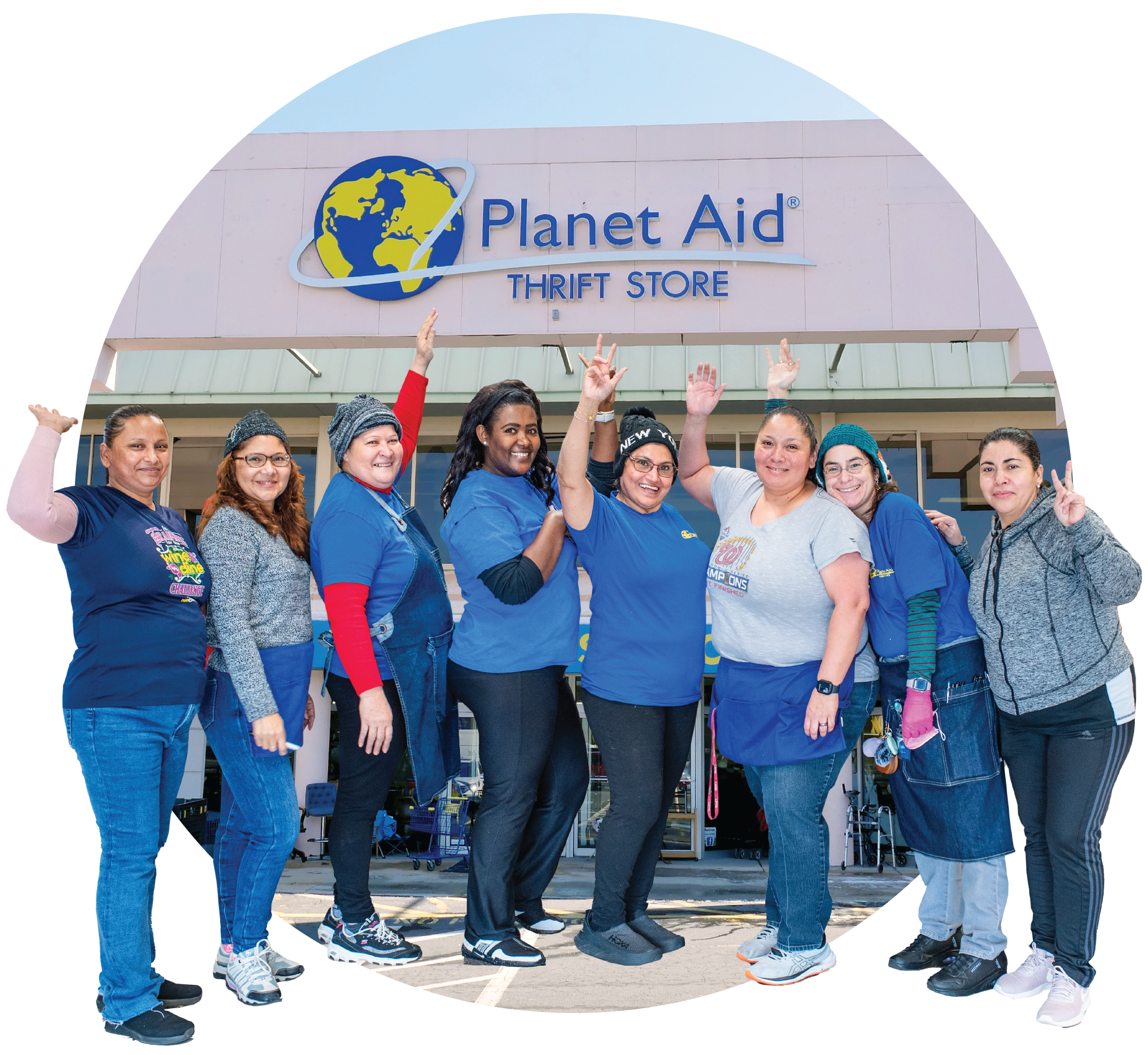 Every purchase helps keep clothing out of landfills and supports Planet Aid's programs in the U.S., Africa, and Latin America, turning everyday shopping into real community impact.